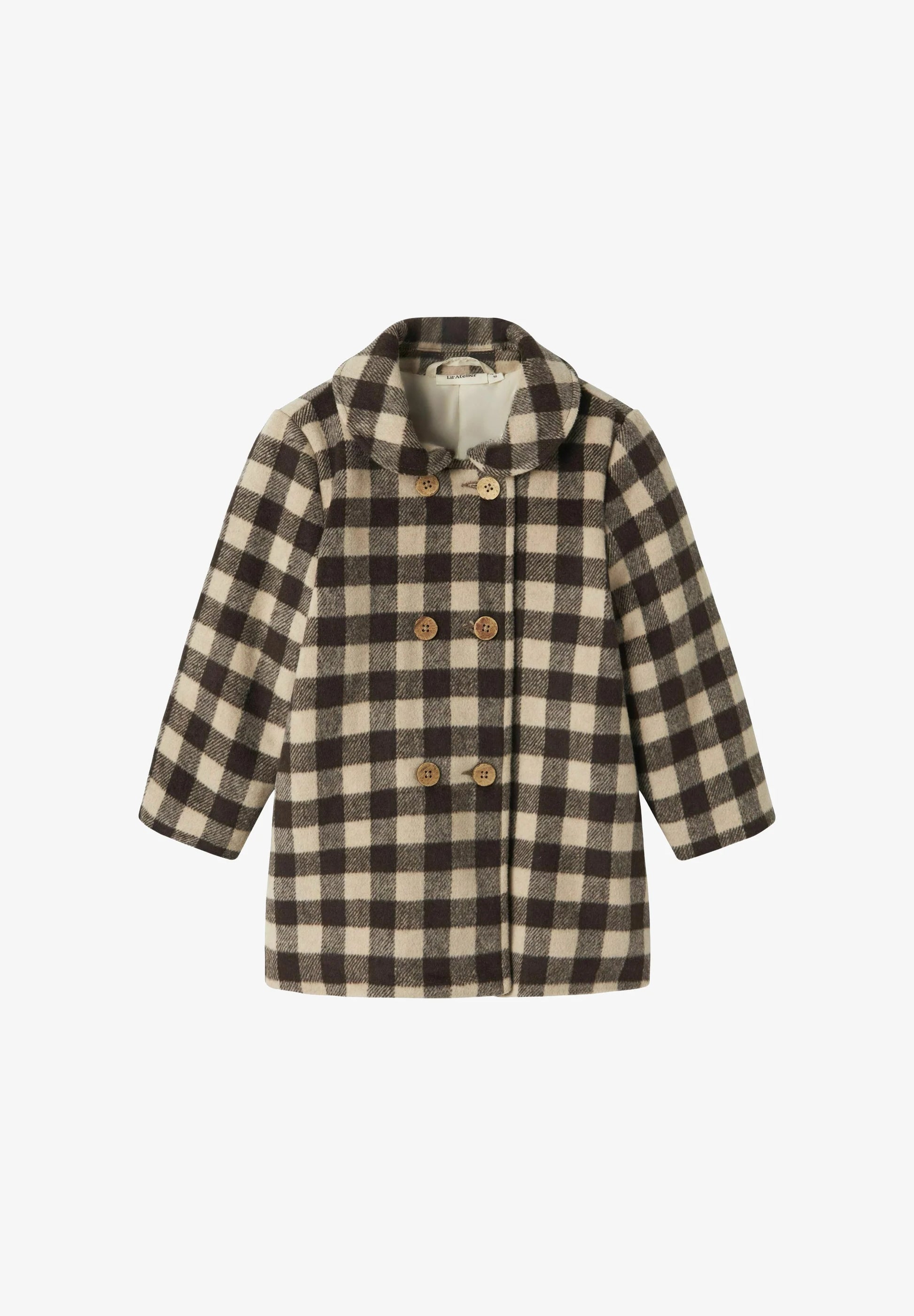 Outlet - Lil' Atelier - Cappotto in panno check marrone beige bimba